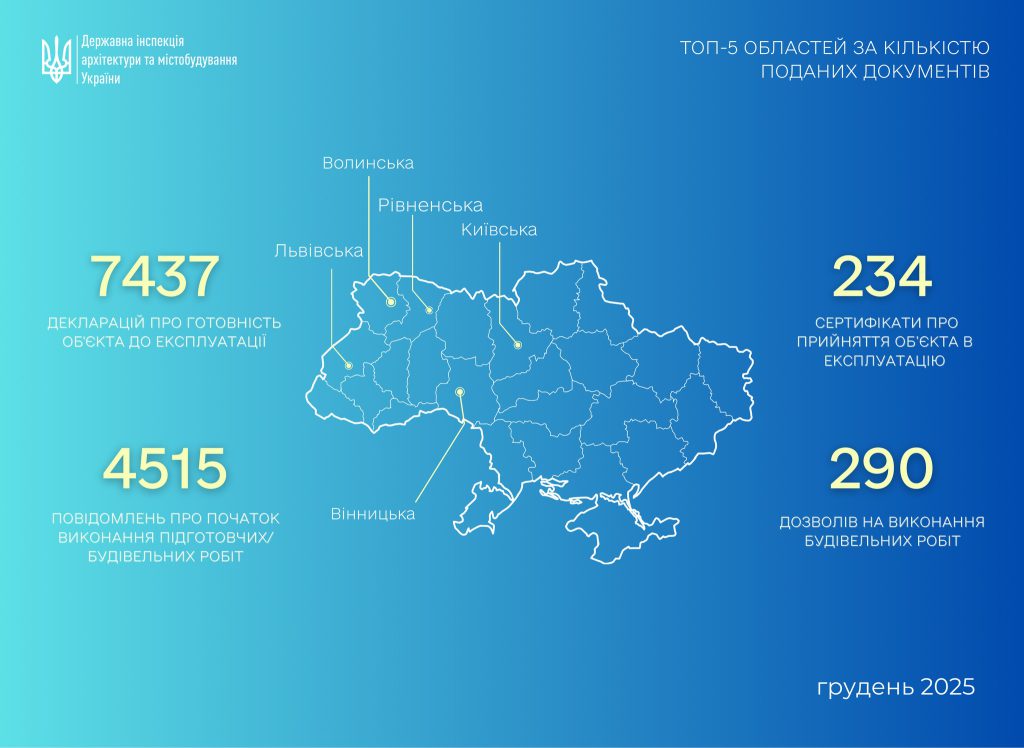 У грудні 2025 року фахівці ДІАМ опрацювали понад 12 тисяч заявок щодо початку виконання будівельних робіт і прийняття об’єктів в експлуатацію, що на понад 20% більше, ніж у листопаді, повідомляє Property Times.