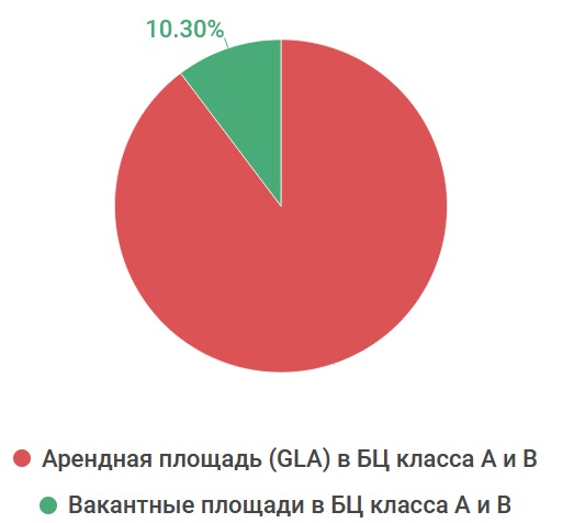 Высокий уровень вакантности в начале 2021 года в БЦ класса «А» был связан с незначительным увеличением доли свободных площадей в существующих бизнес-центрах данного класса, а также с вводом в эксплуатацию двух крупных БЦ в конце 2020 года — Rotunda Hall и Diamond City.